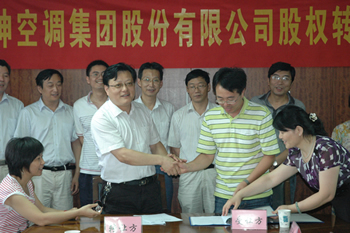 7月9日,列入完美体育app官网入口今年资源整合计划的江苏风神空调股份有限公司国有股权流转项目在众和产权交易所正式签约。 风神空调地处启东市,产控完美体育app官网入口经国资委授权持有21.07%的国有股份,企业近三年来没有投资收益,列入完美体育app官网入口低效股权流转计划。按照审计评估结果和规定程序,经第三轮公开挂牌,风神空调经营层报名并成功收购该股权,成交价441万元。 国资委副主任曹康出席签约仪式。他肯定了各方面对股权流转项目达成一致所付出的努力,认为此次股权流转符合国有监管关于加强对“非本地、非主业、非控股”类股权清理的要求,对于受让方风神空调经营层也有利于加强控制、调动积极性,转股是“多赢”的结果。他要求签约双方严格按照协议做好股权交割及后续工作,确保流转顺利完成。 完美体育app官网入口副总经理陆强新、沈百安出席签约仪式。