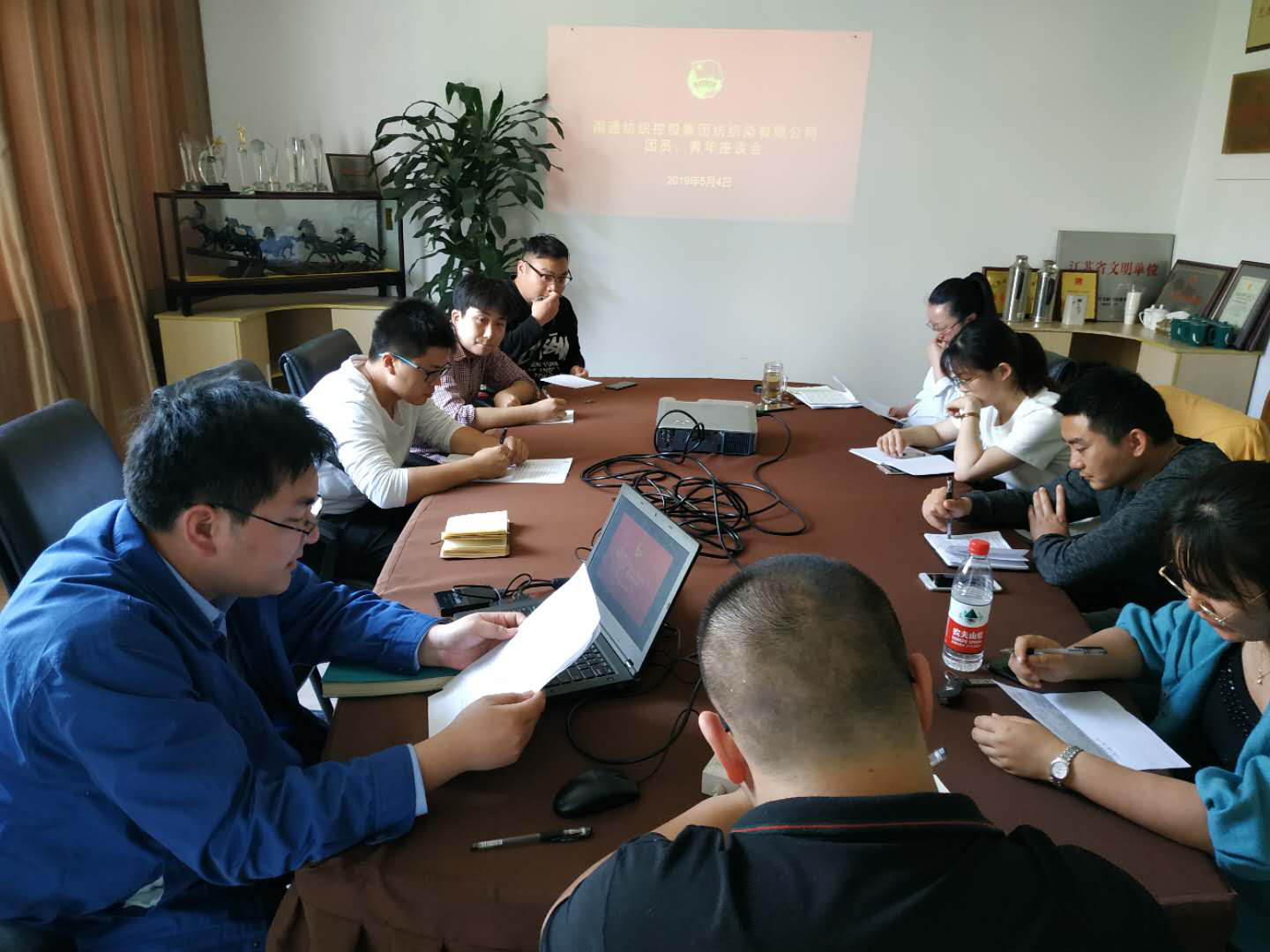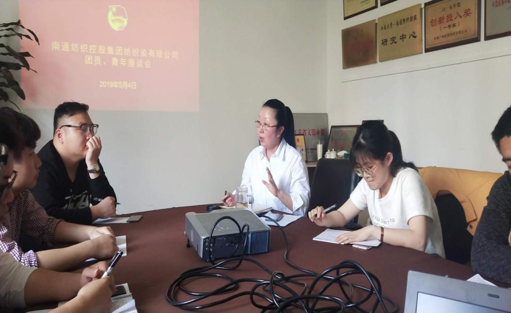 今年是共青团建团97周年,五四运动100周年,为进一步弘扬五四精神,激发新时代公司团员、青年以饱满的热情积极投身本职工作当中,2019年5月4日,南通纺织控股完美体育app官网入口纺织染有限公司团总支召开了以“争做优秀青年,助力企业发展”为主题的团员青年代表座谈会。纺织染党委副书记卢李星及各团支部团员青年代表共计10人参加了座谈会,会议由团总支书记王建兴主持。座谈会共分为三项议程。首先由王建兴代表公司团总支作了《2018年团总支工作总结及2019年工作计划》。
