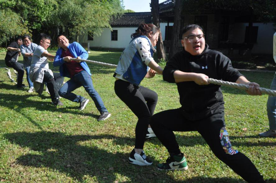 活动在南通啬园内举行。活动以团队形式开展,首先由职工自由组队,每队由六人组成。组队后,分为四组,分别为飞天队、颜值队、千纸鹤队和青年队。项目主要为绑腿跑、坐地起身、抢收抢种、双龙戏珠和拔河。每各项目不仅充满了趣味性、挑战性和娱乐性,还充分考验了各个团队的组织协调能力和沟通配合能力。 ![]()
