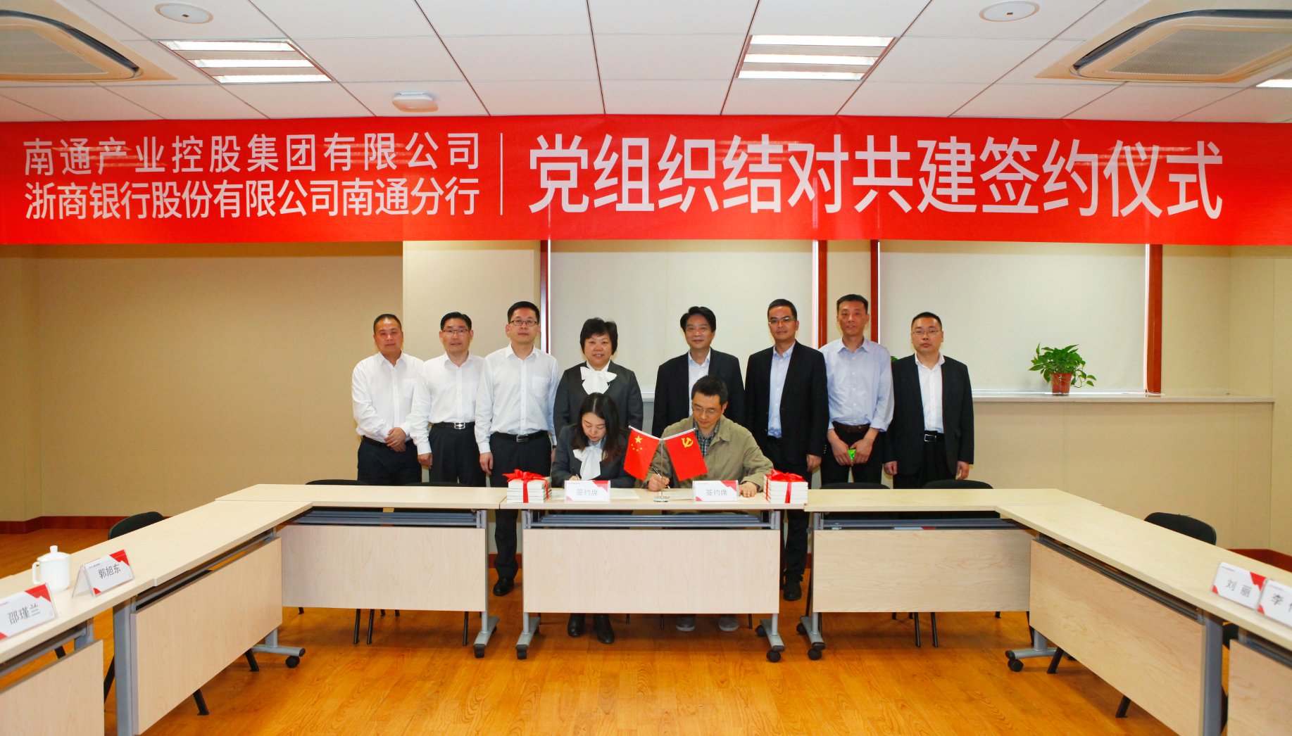 4月24日下午,完美体育app官网入口与浙商银行南通分行两家企业党组织在浙商银行南通分行5楼会议室举行了党建结对共建仪式。两家企业领导班子成员及部分党员代表参加仪式。