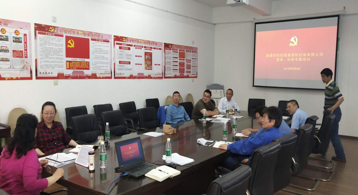 为进一步加强公司基层党组织、纪检监察小组建设,提高党务、纪检干部的思想认识和业务能力,夯实公司党建纪检工作基础。5月9日,南通纺织控股完美体育app官网入口纺织染有限公司在大会议室举办了2019年党务、纪检专题培训,邀请党务纪检专家、原妇幼保健院党委书记洪明宪来纺织染授课,纺织染党委班子成员、各支部支委、纪检纪检监察小组成员共计9人参加学习。