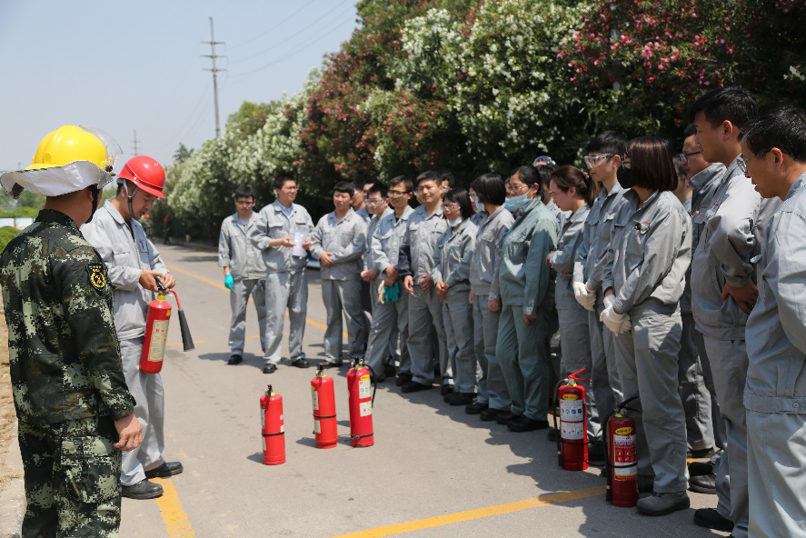 5月22日下午,南通江山农药化工股份有限公司直属团支部在公司消防队举办了消防技能比武活动,此次活动包括手持灭火器灭火、消防水带使用、消防服及空呼器的穿戴。来自公司研究院、业务发展部、营销中心、综合管理部等6个部门,共计28名青年员工参加了活动。活动开展之前,28名参赛选手通过抽签方式分成两组。接着公司消防队长介绍了灭火器的种类、灭火器的使用方法以及比赛规则。