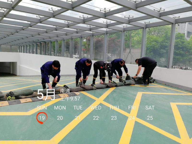 5月19日上午,按照“安全第一,防汛为主、综合治理”的方针,由产研院资产管理部和南通康源物业共同组织,在园区内进行防汛演练,确保在汛期发生暴雨时,能够在最短时间内充分发挥安全保障机制的作用,快速、高效、有序地实施救援工作,提高抵御汛情和应对紧急突发事件的能力。 为确保本次防汛演练活动的顺利进行,按照项目演练大纲和做好防汛演练工作的相关要求,做了充分的前期准备和细致的分工。整个演练的过程,有条不紊,紧张有序,程序流畅。首先对参与演练的全体人员进行相关的常识培训,然后由警戒组、抢险组、设备组分别对隔离警示、沙袋挡水、水泵强排等项目进行演练,最后由医疗组对受伤抢险人员进行医疗包扎。