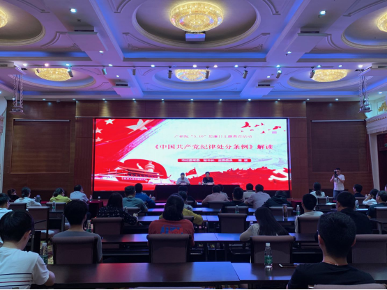 为全面贯彻习近平新时代中国特色社会主义思想和党的十九大精神,对全面从严治党、加强纪律建设作出再部署,充分发挥党纪法规标本兼治利器作用,切实加强以党员干部为重点的全社会廉洁教育,5月27日下午,市纪委常委、秘书长、监委委员周斌以“守纪律 讲规矩”为主题,深入解读《中国共产党纪律处分条例》,上了一堂生动的专题讲座。南通产业技术研究院及下属公司全体人员、陆洪社区党员代表、园区入驻企业党员干部等参加了活动。