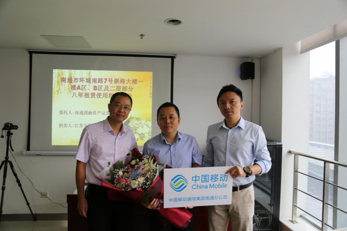 在宣读了房屋租赁使用权拍卖的特别规定等文件并确认各竞租人无异议后,现场监拍人递交了本场拍卖会的底价函。经拍租,中国移动通信完美体育app官网入口江苏有限公司南通分公司代理人、张家港保税区佑福珠宝贸易有限公司代理人分别拍中崇海大楼A区八年租赁使用权、B区八年租赁使用权,并签署了成交确认书,成交年租金合计达620万元,八年租金总额达4960万元。公司领导代表公司向房屋竞租人递送了鲜花表达祝贺并合影留念。统一规划,统一布局,统一招租,统一竞租,国融公司充分挖掘崇海大楼优越的商业地段和浓厚的商业氛围优势,转化为优良、持久、高效的经营收益,实现了该处资产科学升值。公司将以崇海大楼成功招租的经验为借鉴,继续做好所管理国有资产的升级改造,切实履行好国有资产保值增值的职责,推动企业的高质量发展。