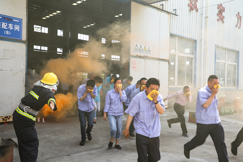 随后,进行了 “安全生产月”主题横幅签名活动和全体人员合影。在启动仪式当天,南通机床还组织开展了消防应急演练,其内容包括人员应急疏散、伤员急救、微型消防站演练、100米接力灭火等消防救援项目。天生港消防救援中队李队长就南通机床应急演练作了点评,他要求每位参与者学会灭火器正确使用方法,掌握火场逃生基本常识,提高自我保护意识,化解风险自救能力,达到应急演练的预期目的。 仪式最后,南通市港闸区安监局丁德胜作出指示:企业员工要以高度负责的主人翁精神,主动担当安全生产作为。企业领导层要正确处理好企业发展与安全生产的关系,坚决防范和杜绝重特大安全生产事故的发生。时刻保持敬畏之心,排查隐患、堵塞漏洞,进一步夯实安全生产基础。同时要加强队伍建设,强化作风锤炼,注重培训演练,提高防灾减灾救灾能力。