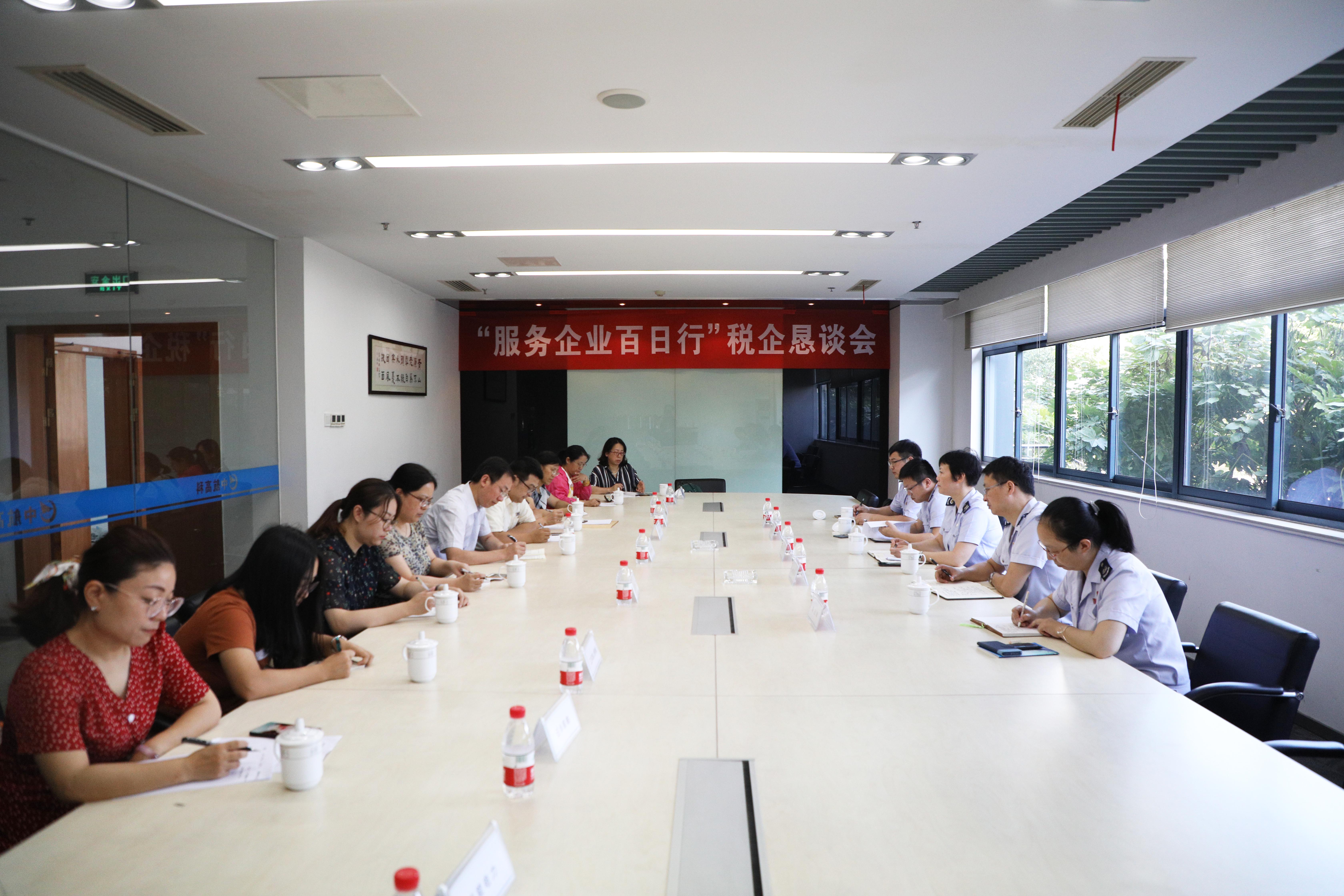 8月2日,南通税务局第一分局局长刘萍,副局长唐新华、蔡威一行五人来中航航空高科技股份有限公司走访,与中航高科、大地电气等十家单位的财务工作者围绕减税、降费这一政策在总部一楼会议室召开税企恳谈会。