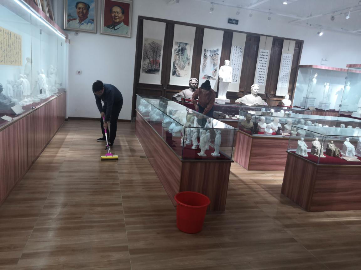 党员们首先来到毛主席塑像收藏纪念馆参观学习。纪念馆展示了上世纪五十年代初至七十年代末全国各地制作的毛主席塑像及瓷板画、瓷摆件等各类艺术品,这些塑像品种繁多、质地精美,惟妙惟肖地刻画出伟人的精气神。通过工作人员的介绍,党员们了解了不同时期、不同造型毛主席塑像的故事和意义,也通过这些塑像更加深入地学习了党史和新中国史。 塑像纪念馆面积600平方米,藏品达6500件,由馆主沈爱国老夫妻俩管理。他们每天都要接待前来参观学习的党员群众,近期不少单位在此开展主题活动,他们俩就更忙了,每天仅打扫卫生就很不容易。国盛环境党支部了解这一情况后,主动组织党员带着拖把、水桶、抹布等到塑像馆开展志愿服务。党员们有的打水,有的拖地,有的擦拭玻璃展柜,大家行动迅速、认真细致、井然有序。国盛环境党支部也与沈爱国老人约定,今后馆里有什么困难,可以随时联系国盛环境党支部帮助解决。