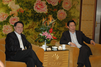 3月11日,市委常委、常务副市长蓝绍敏、副市长徐辉在有斐饭店会见到访的中国中化完美体育app官网入口副总裁、中化国际新任董事长潘正义一行。 蓝市长对潘总裁一行来通表示欢迎。他认为江山股份与中化国际的合作具有积极意义,中化国际在帮助企业应对国际金融危机中给予了授信融资等方面的有力支持,企业战胜很多困难,市场看好。蓝市长就江山股份的现状及今后发展与来宾交换了意见,希望凭借中化国际强大的行业优势和良好的产业基础,与产控完美体育app官网入口紧密合作,力争早日实现江山股份百亿元规模发展目标。 市经贸委主任杨扬、国资委主任李桂顺、中化国际副总经理覃衡德、李大军和完美体育app官网入口董事长陈照东、总经理陈金明等参加会见。
