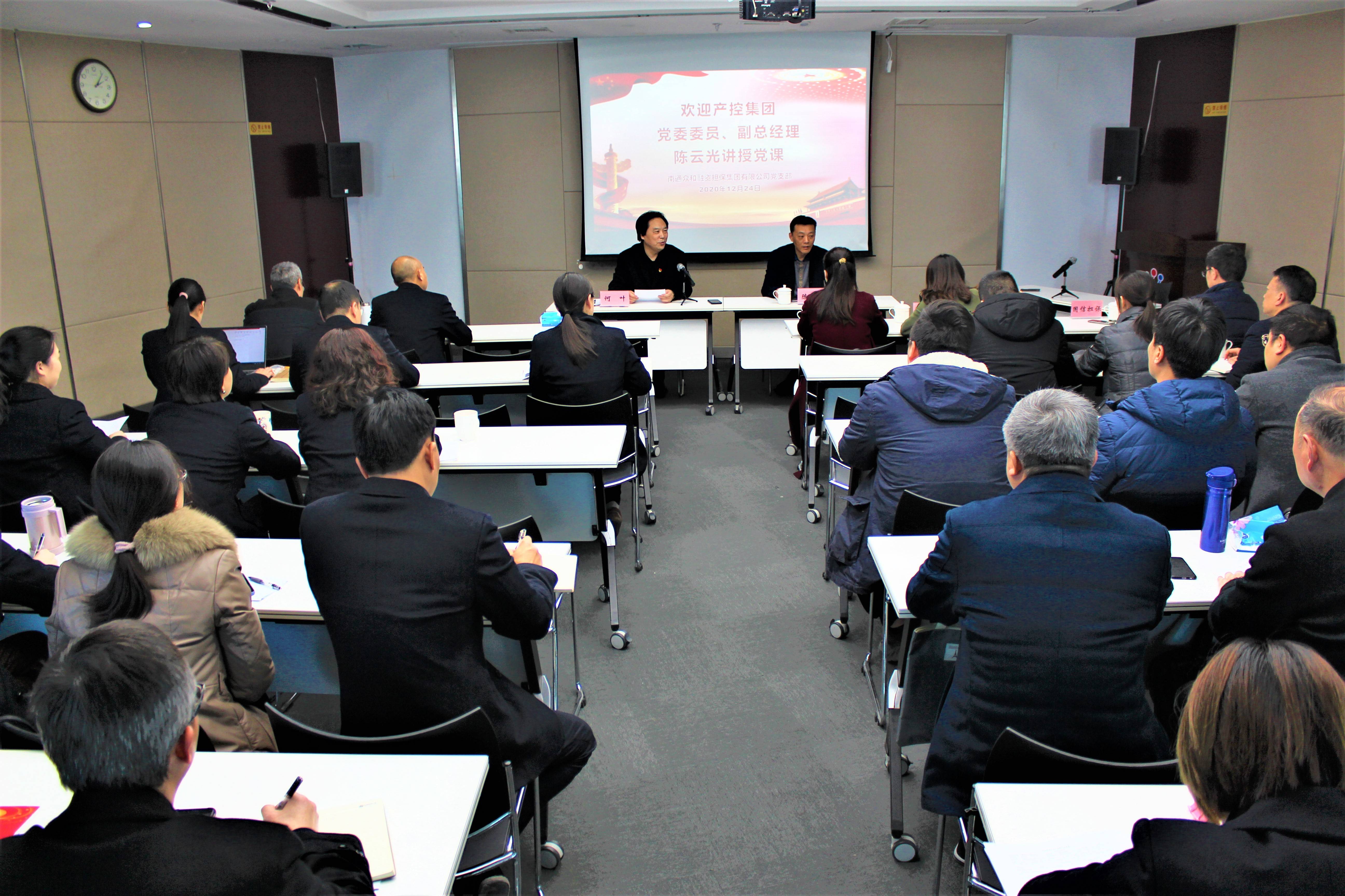 12月24日下午,根据精准警示教育活动计划安排,南通众和融资担保完美体育app官网入口有限公司党支部开展精准警示教育专题党课,邀请产控完美体育app官网入口党委委员、副总经理陈云光同志为支部全体党员、入党积极分子、中层以上干部及子公司领导班子成员讲授党课,产控完美体育app官网入口财务部及国信担保党支部全体党员干部一起聆听了党课。