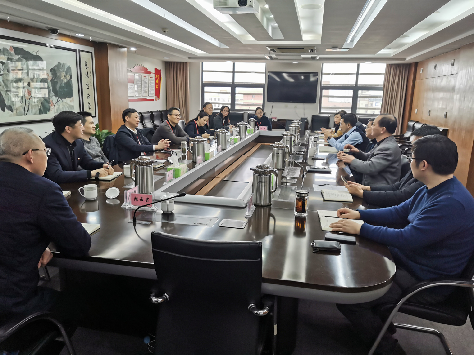 2月26日下午,南通轨道交通有限公司党委书记、董事长王智带领相关人员来产控完美体育app官网入口交流。产控完美体育app官网入口党委书记、董事长张剑桥,总经理顾建国等领导及相关部门负责人参加了座谈会。