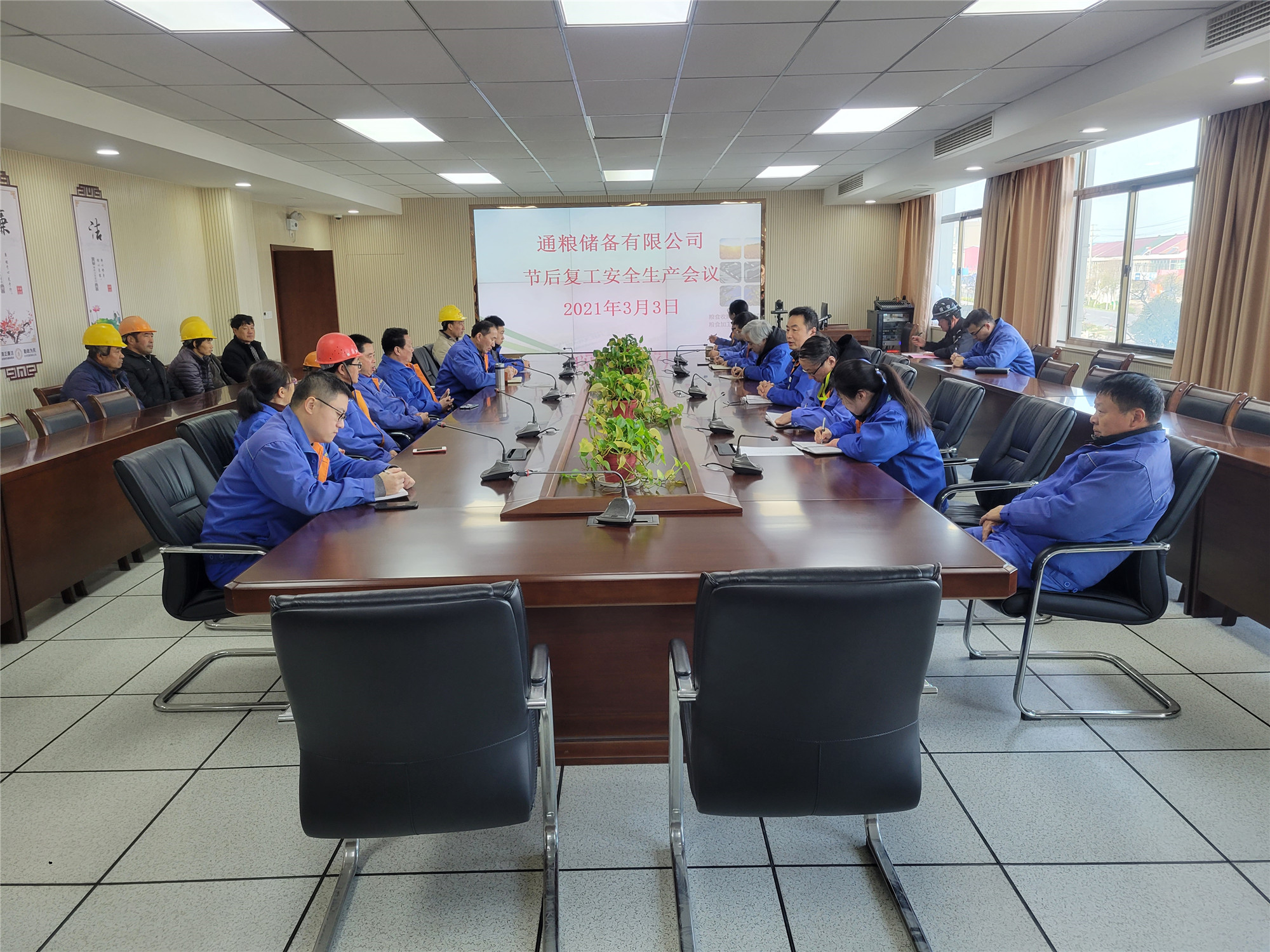 3月3日上午,南通通粮粮食储备有限公司召开节后复工安全生产会议,公司全体在岗职工和外包作业工人参加了此次会议。
