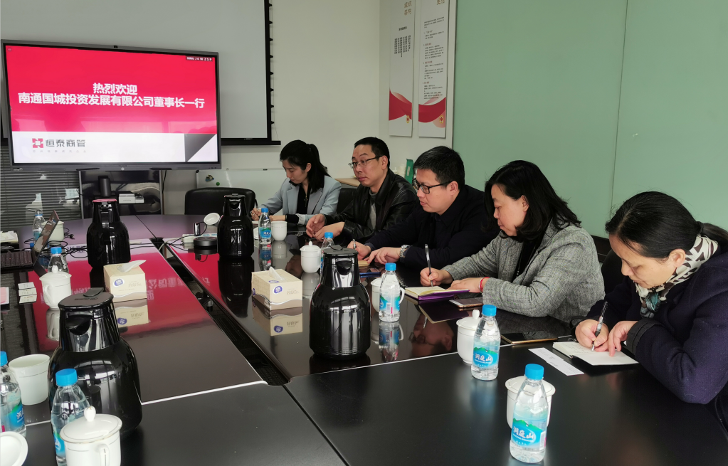 4月8日,国城投资党支部书记、董事长谢俊一行走访了苏州工业园区恒泰商业管理有限公司。恒泰商管公司总经理吴志唐等介绍了苏州恒泰完美体育app官网入口及商管公司概况,并对园区商业项目开展情况做了简要讲解。随后,双方又一同探讨了南通项目的规划以及以公共交通为到导向的TOD项目发展。