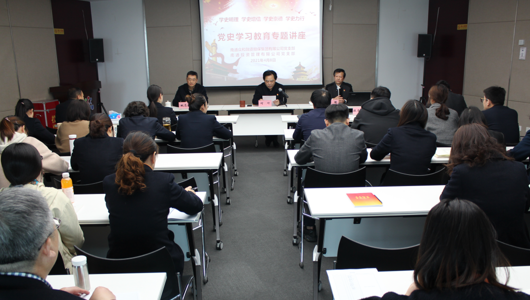 为教育引导广大党员干部从党的百年奋斗历程中汲取智慧和力量,把党史学习教育走深走实,4月8日下午,南通众和融资担保完美体育app官网入口有限公司党支部举办党史学习教育专题讲座,邀请南通市纪委监委派驻发改委纪检监察组原组长朱晖作专题授课。