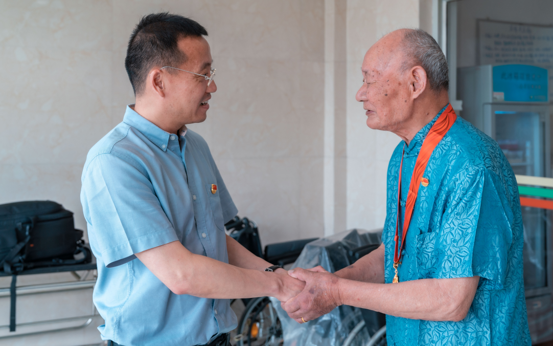 在老党员家中,尹红宇为老人家颁发了纪念章,向他们表达了崇高的敬意和深切的问候,并亲切询问了老人们的身体状况、生活情况,以及当年的战斗历程,倾听他们的心声,叮嘱他们要好好保重身体,安享晚年幸福生活。尹红宇还为离休干部赠送了学习书籍,并送上党组织的关怀。
