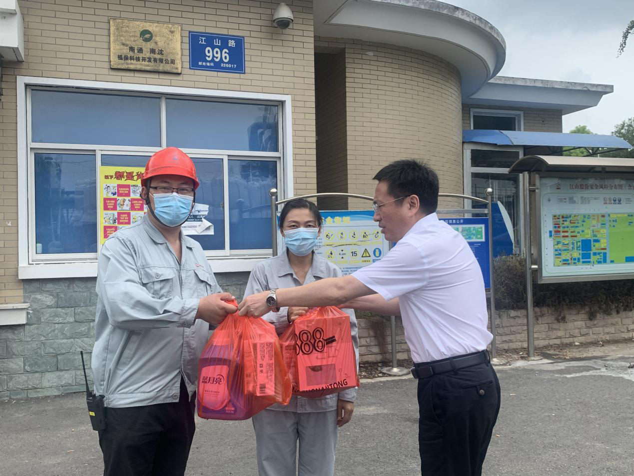 夏末秋至,高温持续。近日,公司党总支书记、董事长、总经理沈利、副总经理张志华等分别带队,走访慰问开发区生产一线职工,并带去炎炎夏日的慰问。
