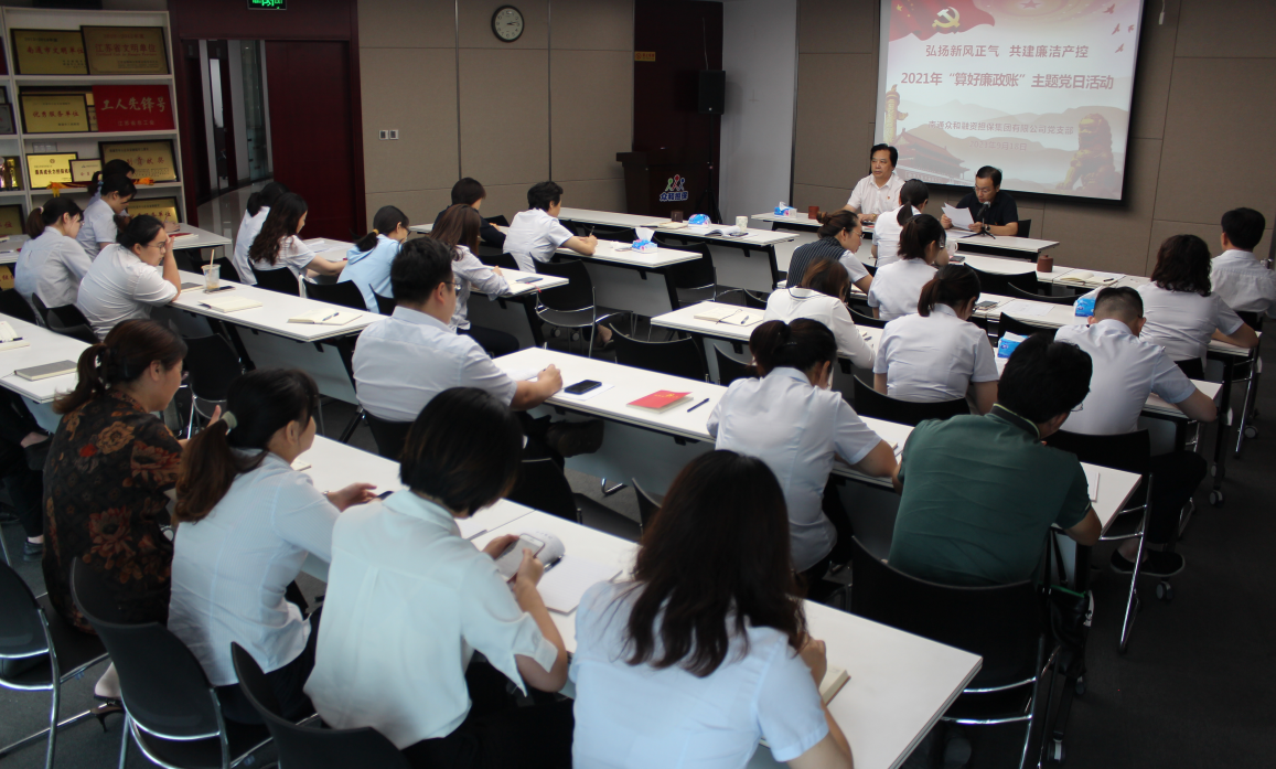 近日,众和担保党支部组织开展“算好廉政账”主题党日活动,全体党员、入党积极分子、公司领导班子成员、中层以上干部及子公司领导班子成员参加,活动由党支部书记何叶主持。