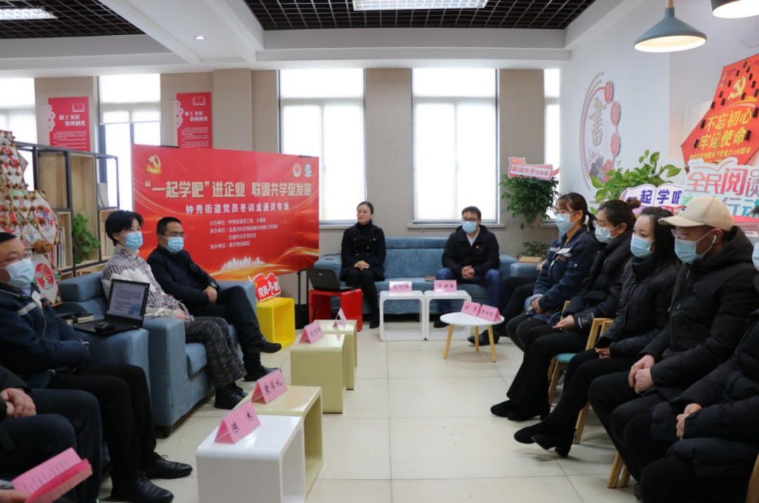 近日,金通灵公司在企业职工书屋内,举办了一场“情境式”微宣讲党员活动。钟秀街道党工委副书记胡建华、党委委员史丽娜,金通灵、生建村社区、星月智创园区党员代表参加了活动。