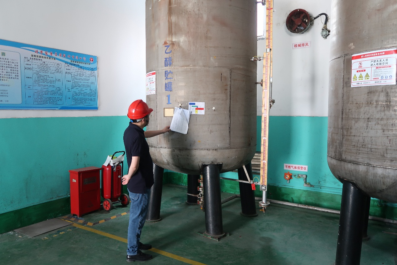 检查组一行先行进入危险品仓库进行检查,成剑详细了解了乙醇的储存量、乙醇出入库的管理要点、乙醇库区的日常检查重点等情况,成剑要求:企业要增强安全风险意识,树立底线思维;要按照安全大检查的要求落实好各项工作;要持续开展安全专项整治,开展回头看,排查生产中可能存在的问题和薄弱环节,严格管控安全风险,做好节假日前后安全生产工作。 检查组在进入仓库、消防控制室现场检查过程中,重点查看了疏散通道、安全出口是否畅通,应急照明、疏散指示标志是否保持完好有效,灭火器压力是否正常,并现场抽查职工消防应急预案掌握情况。成剑强调:企业要进一步落实好消防安全责任制,要按要求开展防火巡查、检查,对查找出的隐患要及时闭环处理。
