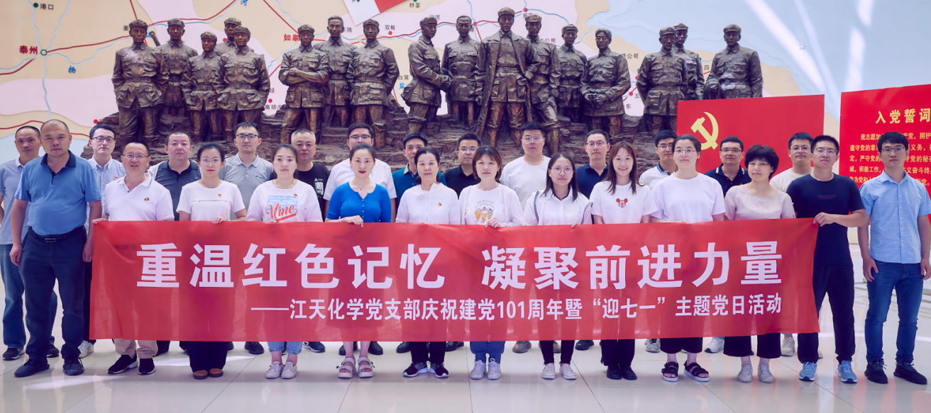为庆祝中国共产党成立101周年,根据公司党支部的统一安排,6月26日,江天化学党支部党员、预备党员、发展对象、入党积极分子以及入党申请人赴海安苏中七战七捷纪念馆和如皋红十四军纪念馆开展以“重温红色记忆 凝聚前进力量”为主题的“迎七一”主题党日活动。