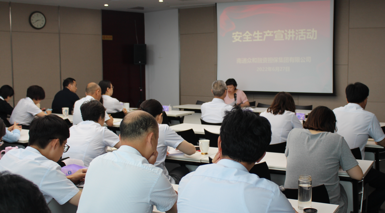 今年6月是全国第21个“安全生产月”,众和担保严格落实“安全生产月”工作要求,结合公司实际,细化完善活动方案,围绕“遵守安全生产法,当好第一责任人”活动主题,扎实开展系列宣贯活动,推动安全生产各项工作走深走实。 6月27日下午,众和担保召开“安全生产月”宣讲活动,公司全体员工及子公司领导班子成员共计40余人参加活动。会上,党支部书记李瑾传达了产控完美体育app官网入口“安全生产月”专题工作会议精神,提出“提高思想认识、落实制度规定、切实担起责任、实现两个确保”的工作要求。
