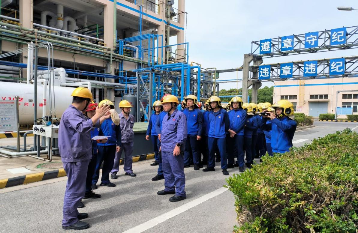 江海消防中队的指战员在熟悉公司各生产装置的工艺流程、原材料、产品的危险特性及应急处置方法等基础上,检查了公司的应急交底箱、消防自动报警系统、消防泵房等的完好情况,最后联合在公司一期罐区举行了甲醇泄漏处置、火灾扑救及人员疏散应急救援演练。
