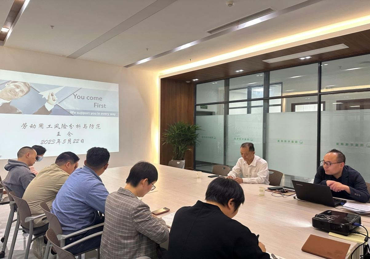 公司邀请北京市惠诚(南通)律师事务所王仓律师为主讲人,王仓律师就劳务用工法律风险、用工模式风险防范、招聘录用风险防范等五个方面进行讲解,同时辅以实际案例,全面讲解公司在用工合同中入职、履职、离职管理过程中可能遭遇的法律风险。最后,王仓律师就大家现场提出的法律问题一一进行了解答。