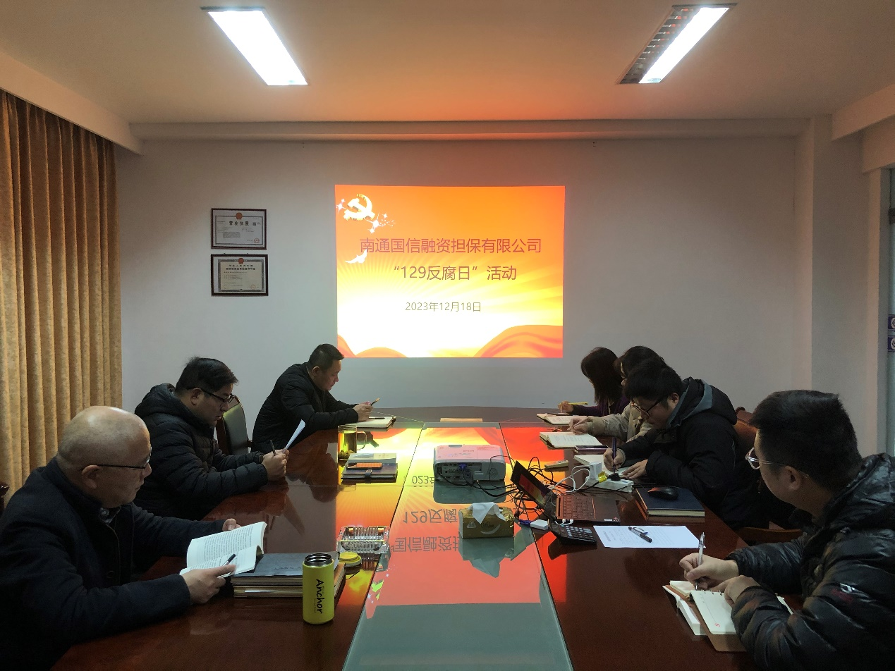 12月18日上午,国信担保公司党支部组织开展了“12•9”国际反腐日主题党日活动,公司全体干部职工参加了此次活动。 此次主题教育活动,结合主题教育相关学习内容一体推进,活动中,公司党支部负责人高翔同志从三个方面对大家进行廉洁提醒:一要勤于学习,加强自身修养;二要严于律己,加强廉洁自律;三要增强责任,推动工作落实。 活动最后,大家集体观看了南通历代贤吏微视频《以謇为镜——张謇清廉爱民二三事》《心端守洁 勇往直前——抗英名将张成龙》等。 通过此次活动,进一步增强了公司全体职工的廉洁自律及责任意识,大家纷纷表示,要以“12·9”国际反腐日为契机,筑牢思想道德防线,为营造风清气正的公司环境做出积极的贡献。