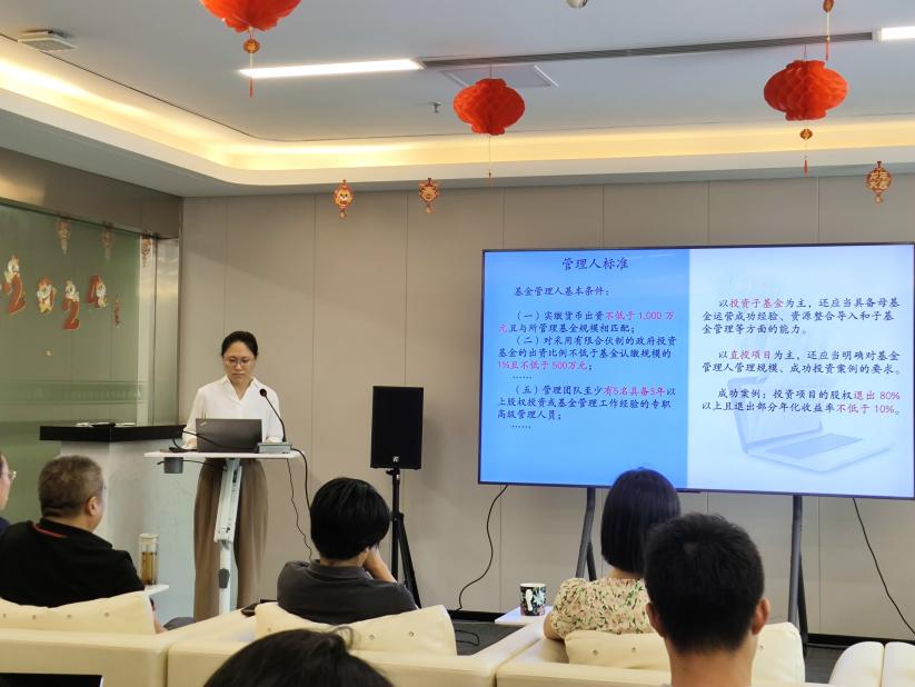 公司风险控制部季琳围绕政府投资基金设立与募集、管理人遴选、基金投资决策、投后风险控制与绩效评价、基金终止与退出等环节,对政府投资基金管理要求进行解读。 公司财务审计部陶东旭对财务基础知识进行了普及,同时结合实际工作对开展财务尽职调查的重点关注事项进行详细讲解,并对典型案例进行深入剖析,介绍了面对企业财务问题时查证与处理的方法。 今后,公司将继续开展各种类型的员工内部培训,强化团队内部知识传播,加强团队沟通协作,持续提升专业队伍素质能力,为公司高质量发展提供坚实的人才支撑和智力支持。 |