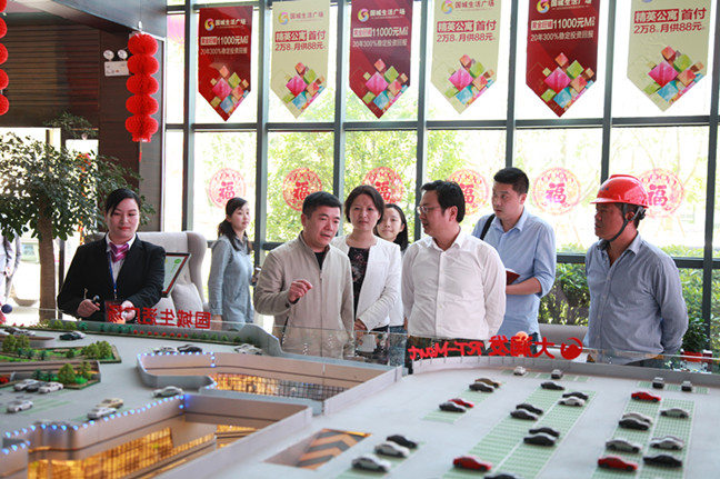 张市长一行饶有兴趣地参观驻足在国城生活广场售楼处展厅沙盘前,仔细查看了项目平面功能布置,听取了国城公司领导的情况汇报。他在对项目建设工作给予充分肯定的同时,指出观音山新城作为市区的新兴板块,中心城市新的增长,及承载着城市转型升级的重任。国城生活广场作为市政府规划观音山新城区重点建设项目,国城公司要充分利用政府提出 “大众创业、万众创新”理念这一有利契机,认真研究,借鉴相关商业地产、市场经验,科学把握业态布局,改进营销手段,在带动区域人气的同时,确保健康发展,为全市经济发展注入新的活力。