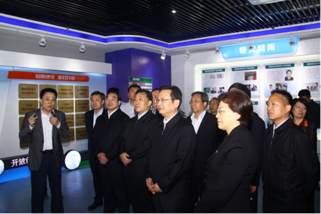 4月14日下午,徐州市委书记张国华,市委副书记、市长周铁根率领徐州市党政代表团来南通产业技术研究院参观考察。南通市委书记陆志鹏,市委副书记、市长韩立明陪同考察。